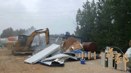 潮白大街幸福渠道路两侧违章建筑拆除中